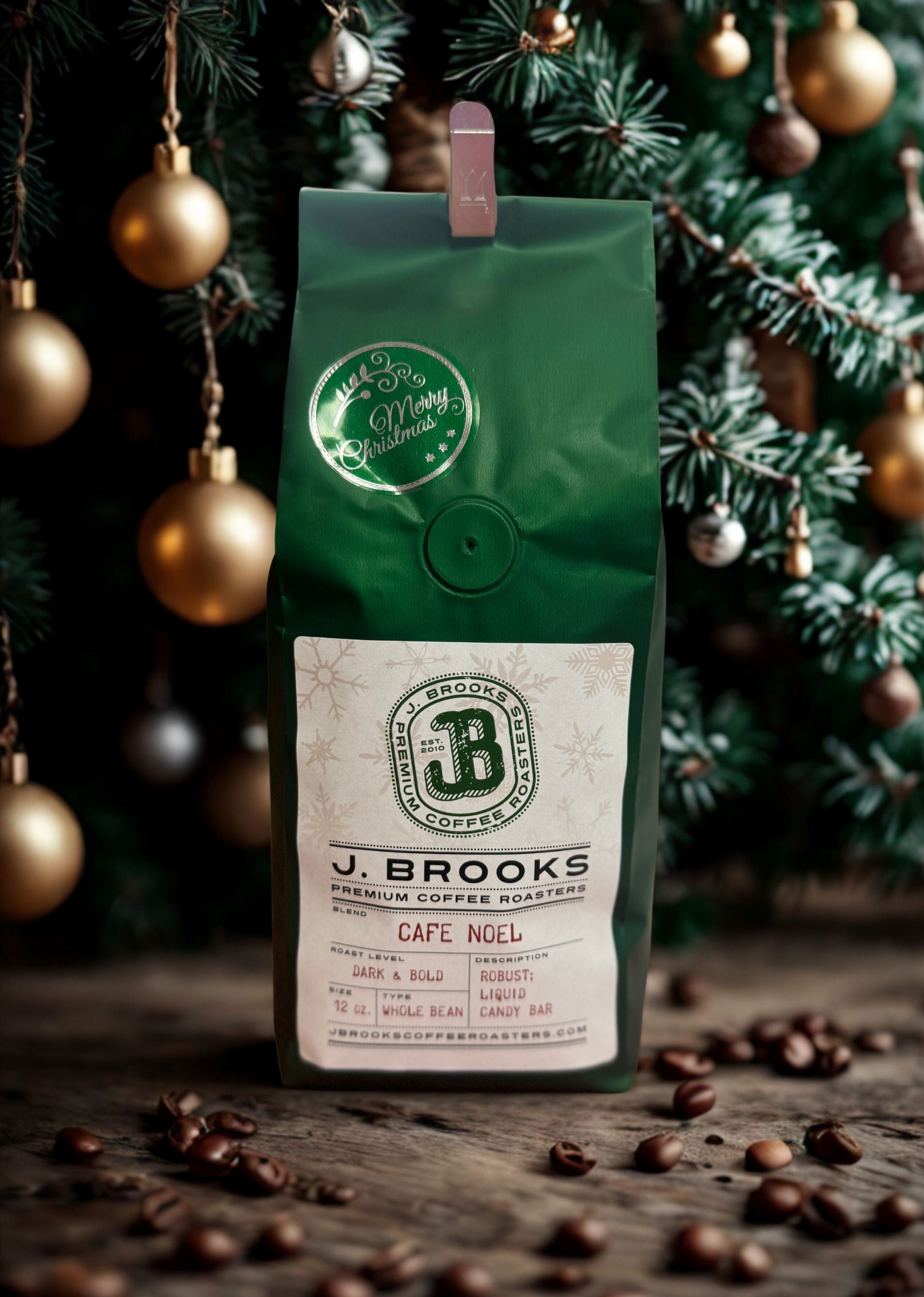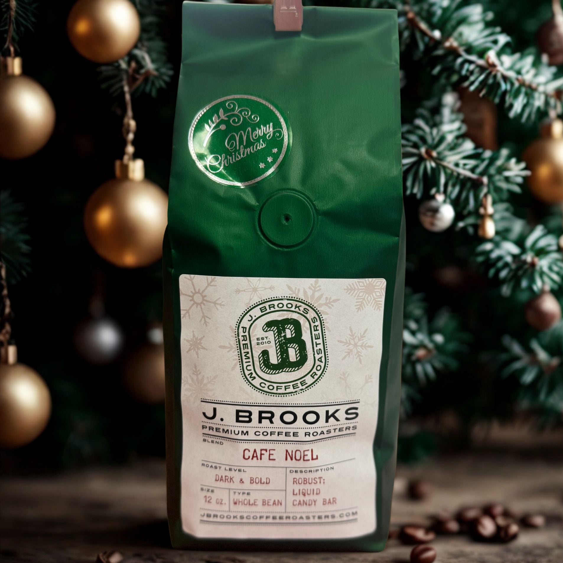 Tis the season! J. Brooks is pleased to bring you our signature Christmas blend, Cafe Noel. Along with the spirit of Christmas, this is sure to warm you all winter long. Enjoy a bag for yourself, or spread the joy of Christmas with this special gift.
